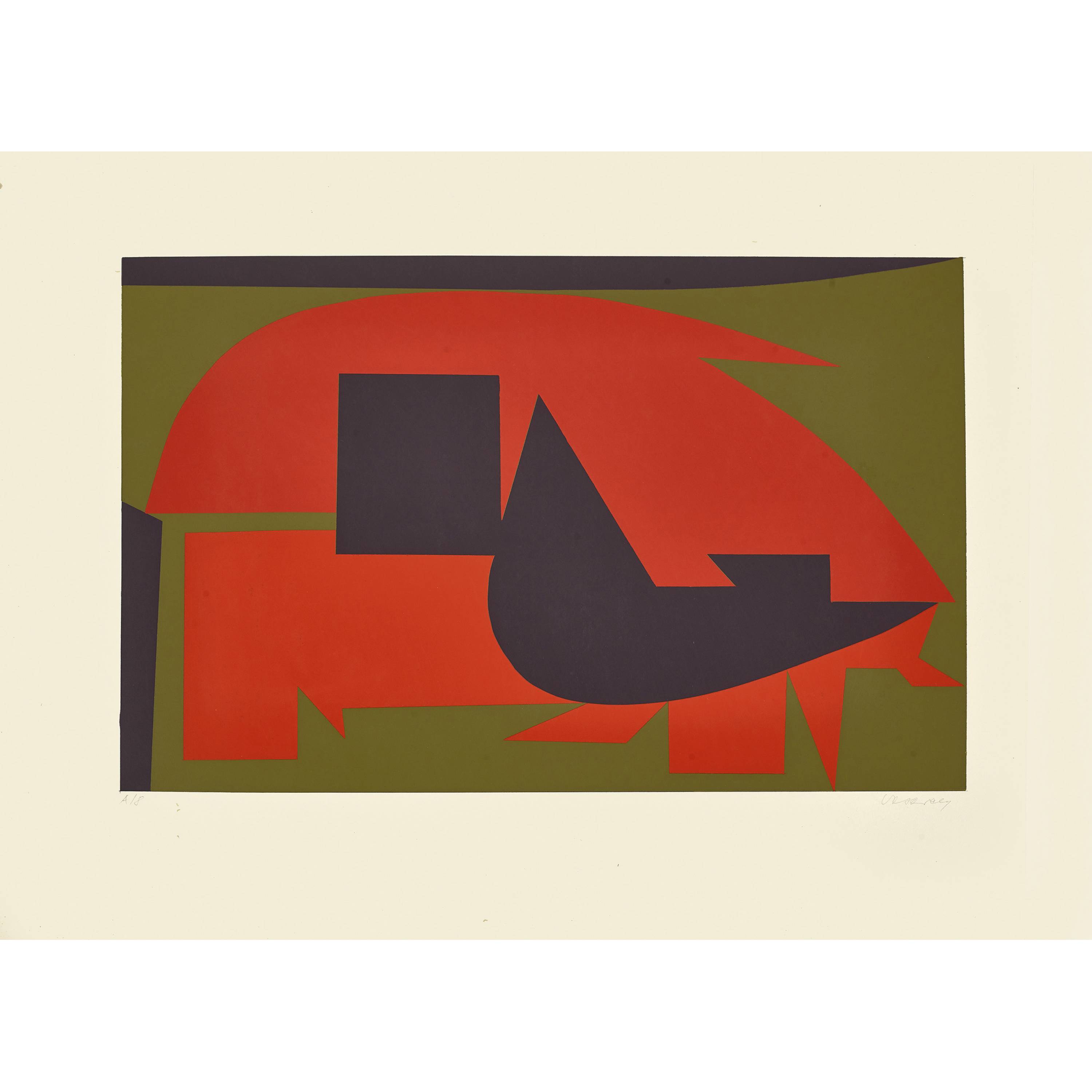 Mappe. Éditions Denise René, Paris 1955. Num. Auflage 8/65 (Gesamtauflage 100 Exemplare). Text von Victor Vasarely, Inhaltsangabe der Werke, Druckvermerk. Mit 12 Serigrafien auf losen Bogen, je handnum. A-L/8 u.l., handsig. u.r., je ca. 66x51 cm (Blattgrösse): 1. "Garam" (1948), 2. "Akka" (1949, auf grauem Papier), 3. "Zaïra" (1950), 4. "Donan" (1950), 5. "Pamir" (1951), 6. "Luberon" (1951), 7. "Senanque" (1952), 8. "Darjiling" (1953), 9. "Kandahar" (1953), 10. "Orom" (1953), 11. "Zsolt" (1953), 12. "Keryado" (1954). Schwarze Leinenmappe, Deckeletikett mit Künstlersig., Bandschliesse, Gr.-Folio