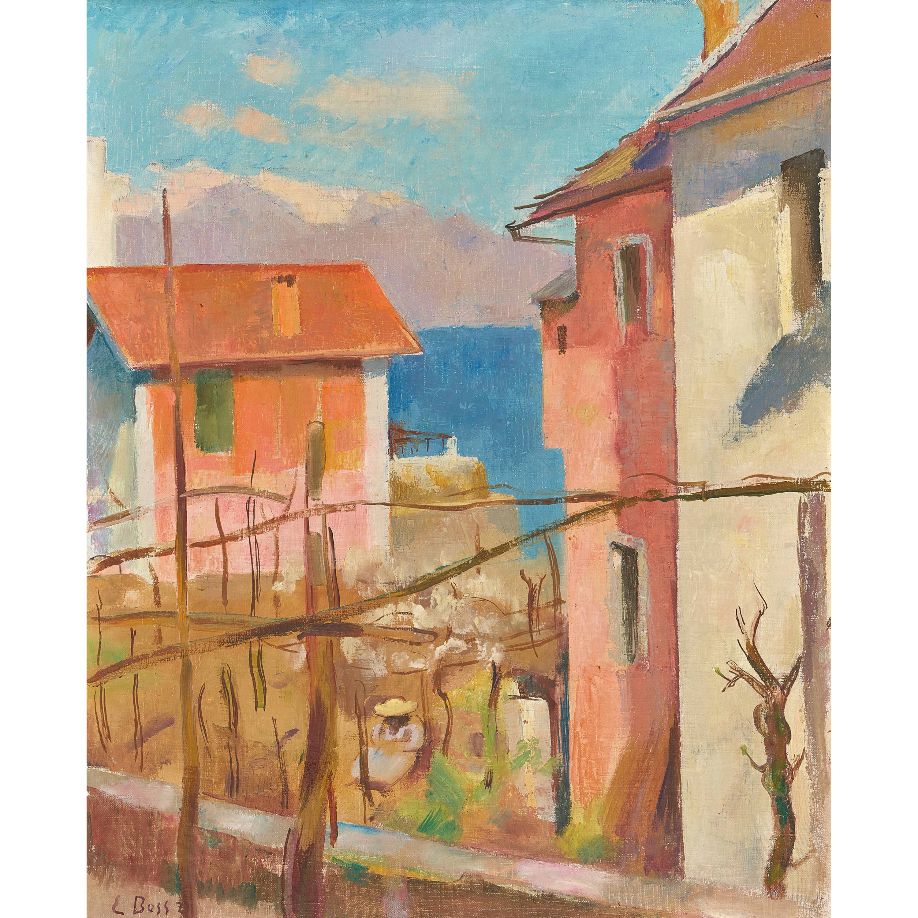 Südliche Häuser oberhalb eines Sees.