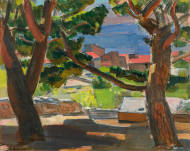 "Ziñias" (Stillleben mit Zinnien in einer Vase).