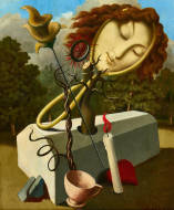 Werkensemble "Der Verletzlichkeit Raum geben" mit Skulptur und Gemälde.