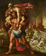 Äneas rettet seinen Vater Anchises aus Troja.