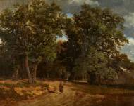 Waldweg mit Reisigsammlern.
