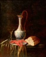 Stillleben mit Krebsen, Brot, Kelch und Deckelkanne.