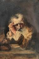 Sitzender alter Mann am Tisch.