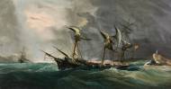 Segelschiffe auf stürmischer See.
