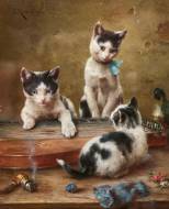 Spielendes Kätzchentrio.