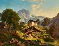 Idyllische Alplandschaft mit Häusern.