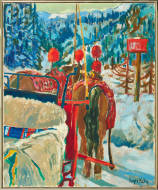 "Pferdekutsche im schneebedeckten St. Moritz".