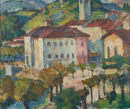 Landschaft mit Dorf.