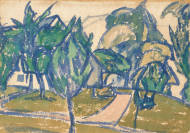 Landschaft mit Bäumen.