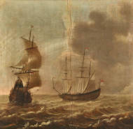 Zwei holländische Kriegsschiffe (Brigg und Fregatte).