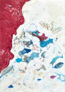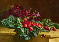 Stillleben mit Stiefmütterchen und Erdbeeren.