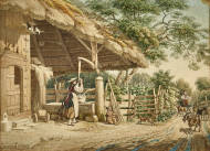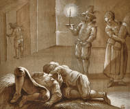 Wirt und Magd entdecken zwei Betrunkene im Stroh.