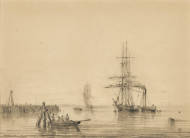 Schiffe vor Neapel mit Blick auf das Castel Sant'Elmo.