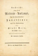 "Nachricht von dem Militär Aufzuge, bey der bevorstehenden Jubelfeyer auf die Erbauung der Stadt Bern, im Jahr 1791".