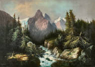 Bergbach mit Blick auf Rosenlaui mit Well- und Wetterhorn.