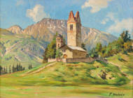 Landschaft mit Kirche.