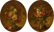 Blumenstillleben in Glasvase. Gegenstücke.