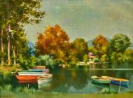 Ruderboote am Ufer.