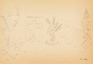 Hasen und Federvieh bei der Stalltür.