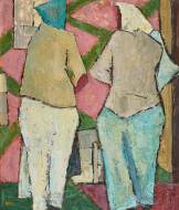 Zwei Bäuerinnen von hinten.