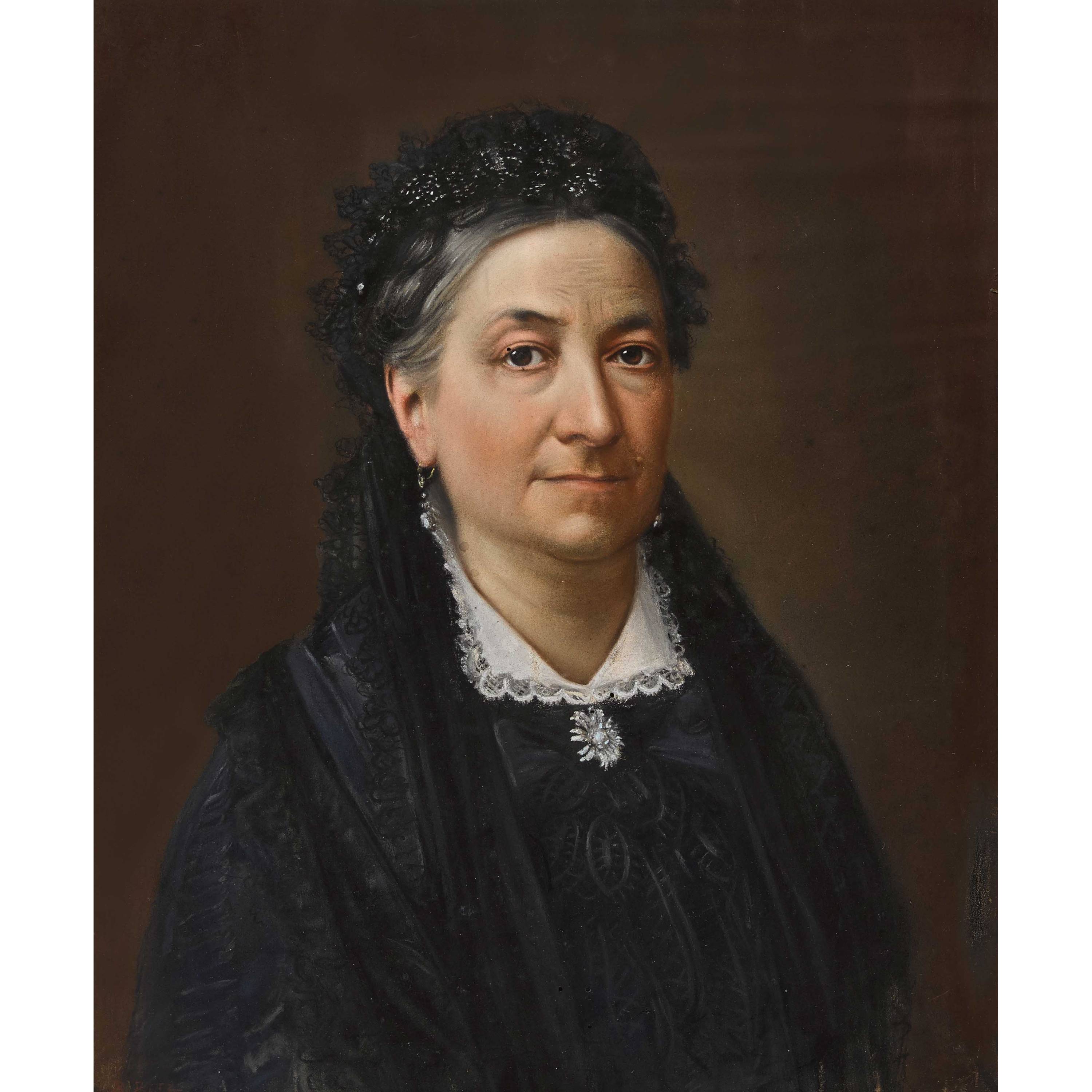 Porträt einer Dame in schwarzem Kleid.