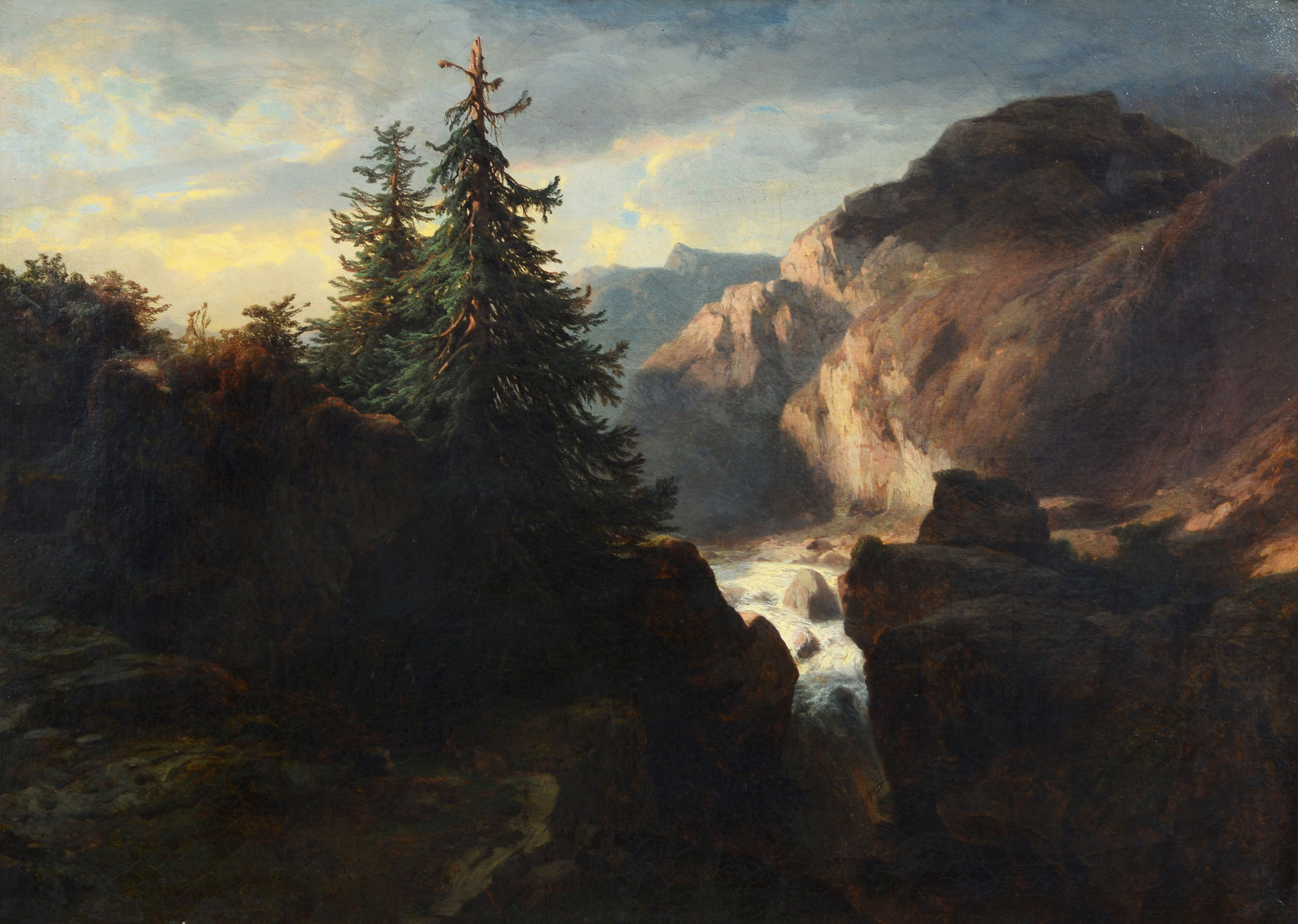 Alexandre Calame war zunächst nicht für den Künstlerberuf bestimmt, obwohl er nach dem frühen Tod des Vaters Schweizer Veduten kolorieren musste, um sich und seiner Mutter den Lebensunterhalt zu verdienen. Mit 14 Jahren kam er als Lehrling in ein Genfer Bankierhaus. Der Direktor des Unternehmens, der zugleich Calames Vormund war, erkannte die künstlerische Begabung des Knaben und stellte ihn François Diday vor, in dessen Atelier er 1829 eintrat. Dort machte er rasch Fortschritte und entschloss sich bereits nach drei Monaten, die kaufmännische Laufbahn aufzugeben und sich ganz der Malerei zu widmen. Calame avancierte in der Folge zu einem der bedeutendsten Schweizer Landschaftsmaler, der die verschiedenen Stimmungen und Lichtverhältnisse, aber auch die majestätische Grösse und unbezähmbare Wildheit der Alpenwelt wie kaum ein anderer darzustellen wusste.