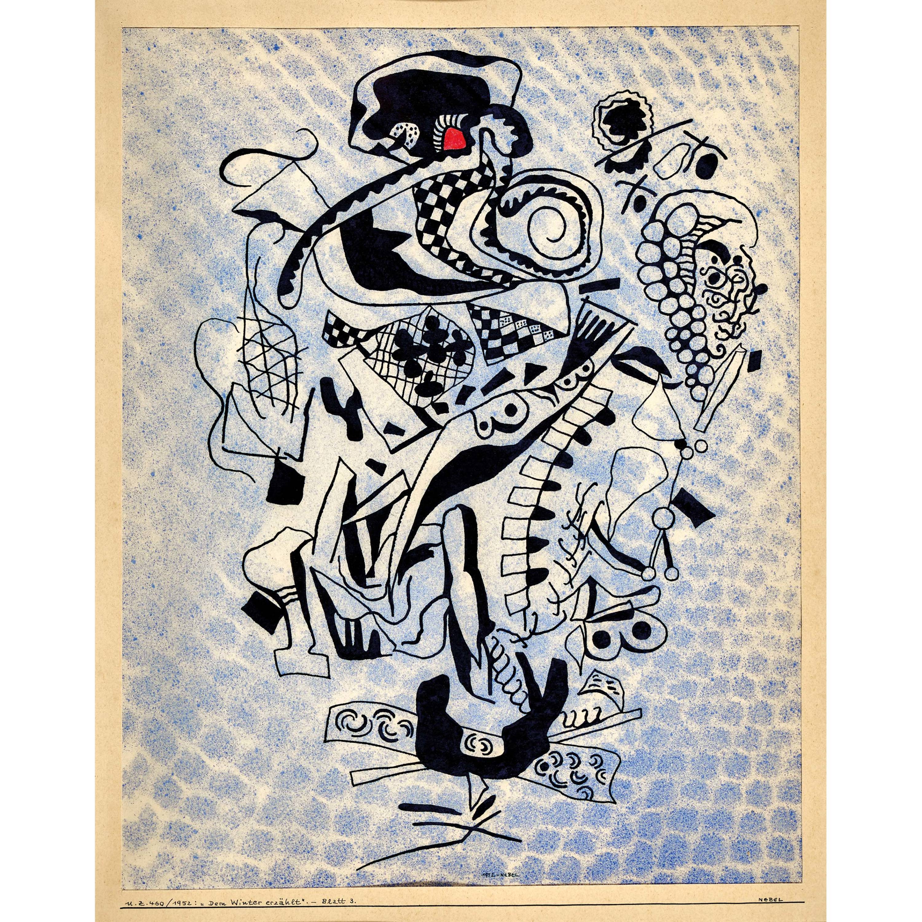 Tusche und Sprühtechnik, sig. u. dat. 1952 u.M., a. Unterlagekarton sig. u.r., dat. 1952, betitelt, num. U.Z.460, bez. "Blatt 3", verso sig. u. bez.,