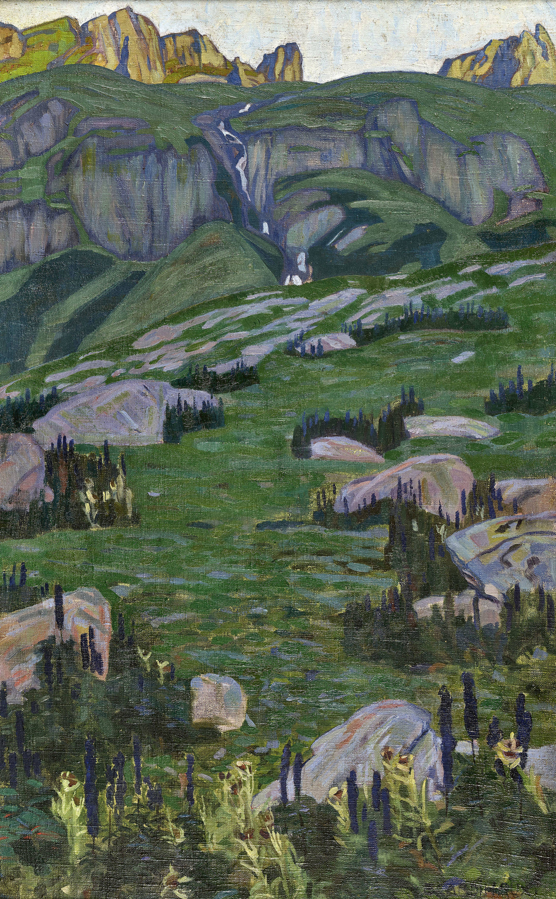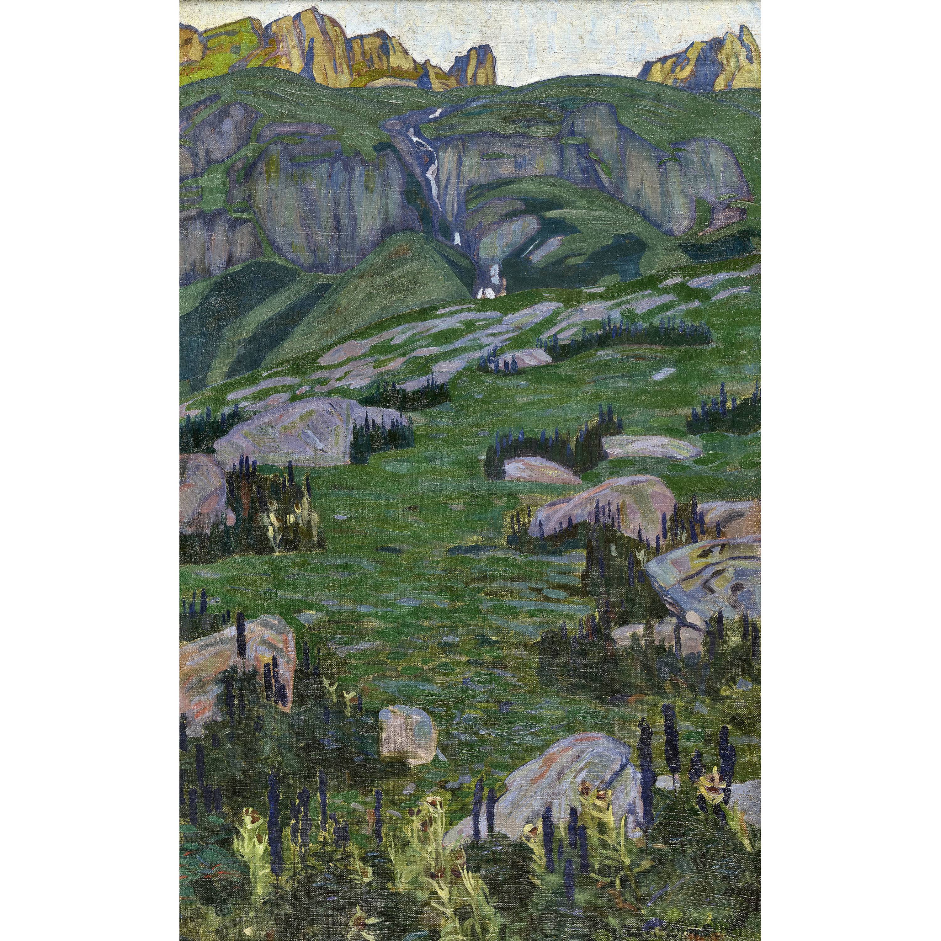Berglandschaft mit Wasserfall.