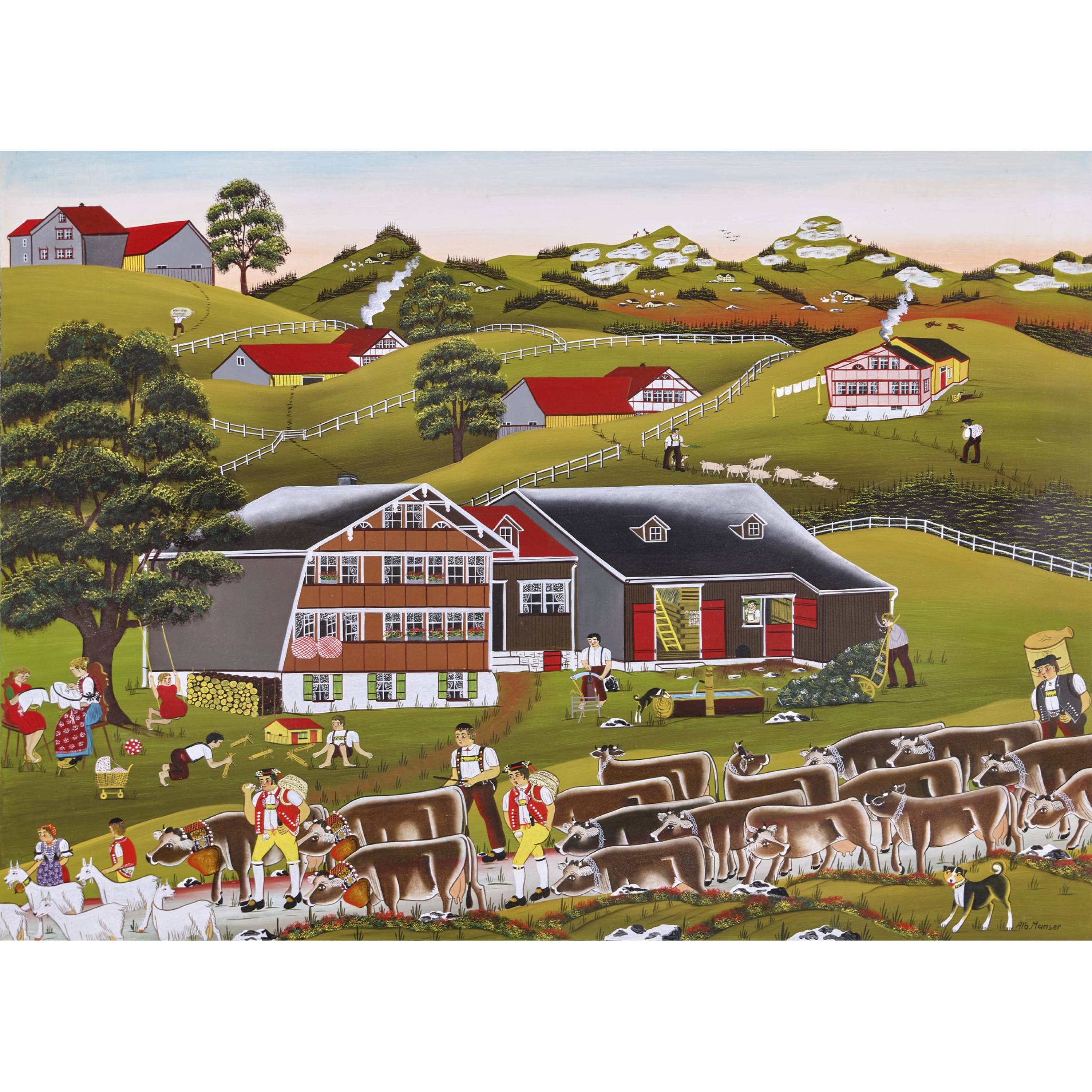 Der Appenzeller Bauernmaler Albert Manser galt bereits zu Lebzeiten als einer der bedeutendsten Vertreter der naiven Malerei. Aufgewachsen auf einem Bauernhof auf dem Hirschberg bei Appenzell zeigte er schon früh künstlerisches Talent. Während seiner Ausbildung zum Konditor in St. Gallen machte ihn sein Lehrmeister und Sammler der Senntumsmalerei, Jakob Spörri, mit der Kunst vertraut und ermunterte ihn dazu, Gemälde nach traditionellen Vorlagen zu schaffen. Ab 1967 widmete sich Albert Manser ausschliesslich der Malerei. Popularität über die Grenzen hinweg erlangte er mit seinen reich illustrierten Kinderbüchern "Albertli: Geschichte eines Appenzeller Bauernbuben" und "Barbara". Eine Ausstellung in den Vereinigten Staaten machte sogar die New York Times auf ihn aufmerksam, die ihn mit der naiven amerikanischen Malerin Grandma Moses verglich. Albert Mansers Werke dienten sowohl der UNICEF als auch der Pro Juventute als Sujets für Weihnachtskarten. Schwer erkrankt, erhielt der Appenzeller Künstler bereits im Juni 2010 den Innerrhoder Kulturpreis 2011.