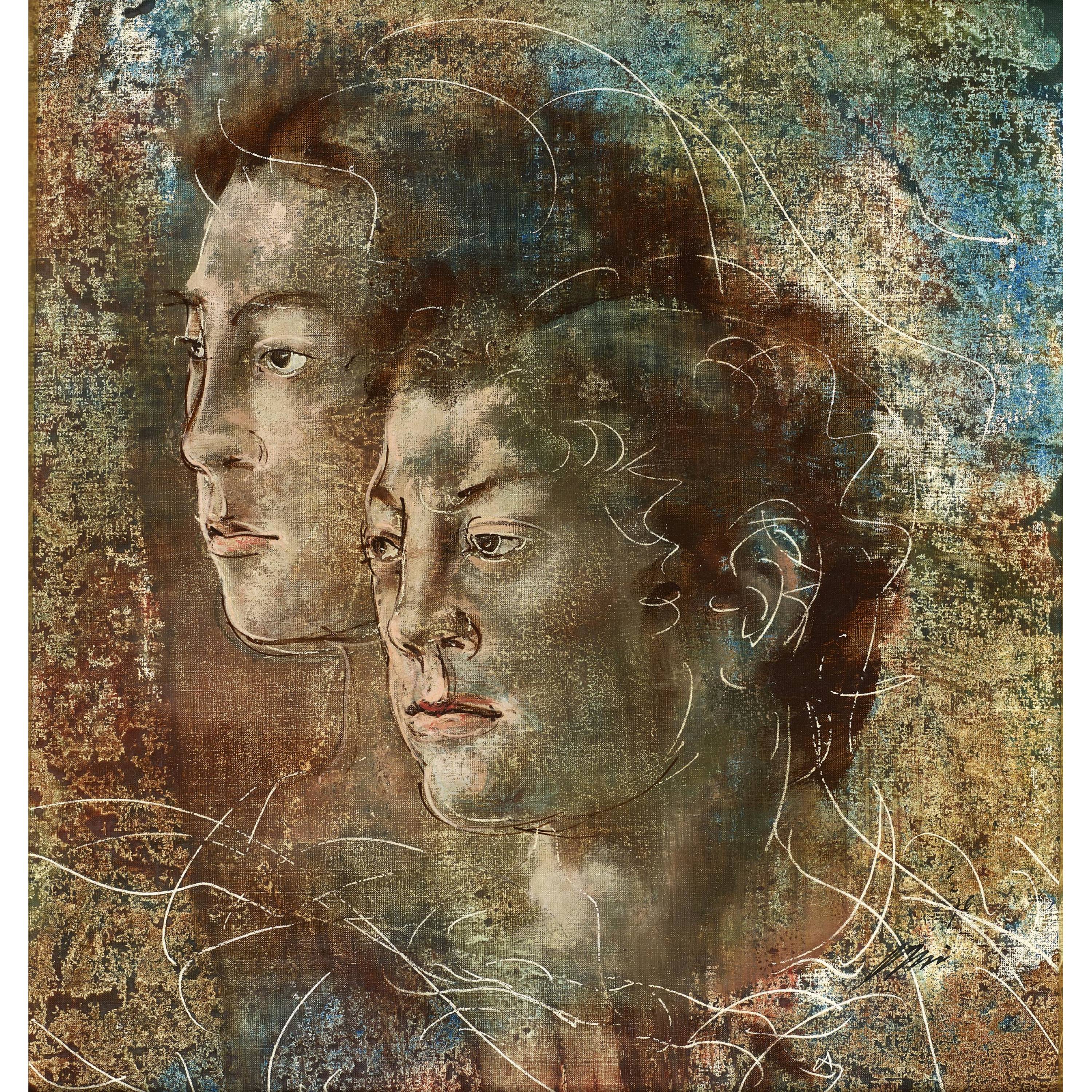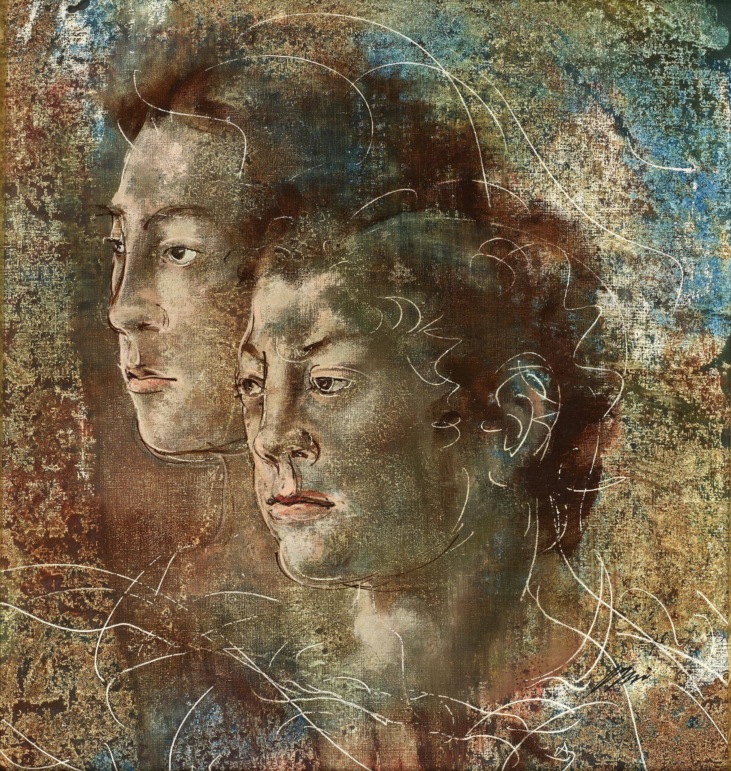 Tempera auf Leinwand, sig. u. dat. "3.2" (19)76 u.r., verso betitelt, gewidmet (1981) u. mit Zeichnung (Taube),