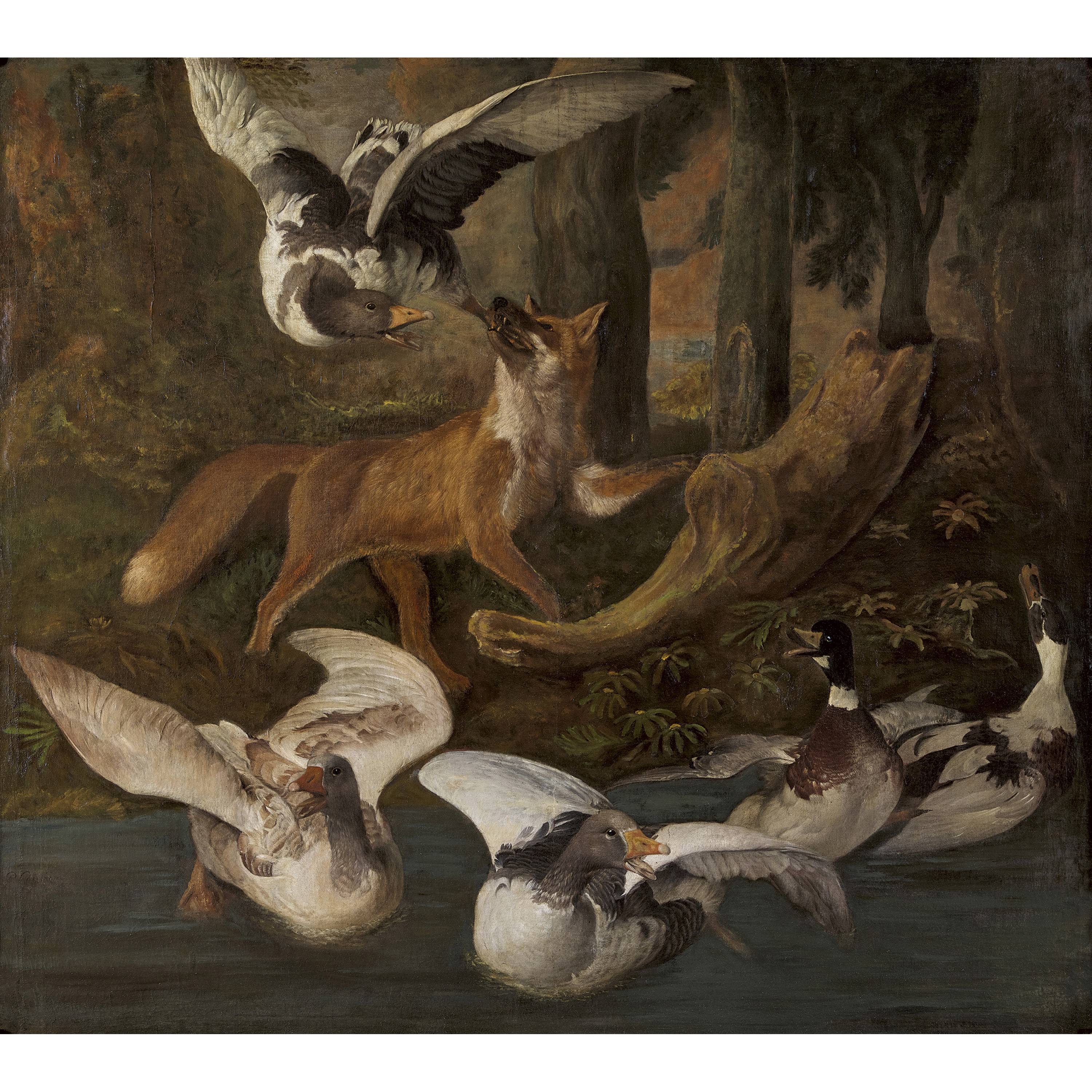 "Oies surprises par le renard" lebt in erster Linie von den Hell-Dunkelkontrasten und der dynamischen Komposition der vom Fuchs gejagten Gänse. Man kann sich das grossformatige Werk als einstige Dekoration in einem Jagdschloss bestensÿvorstellen.
