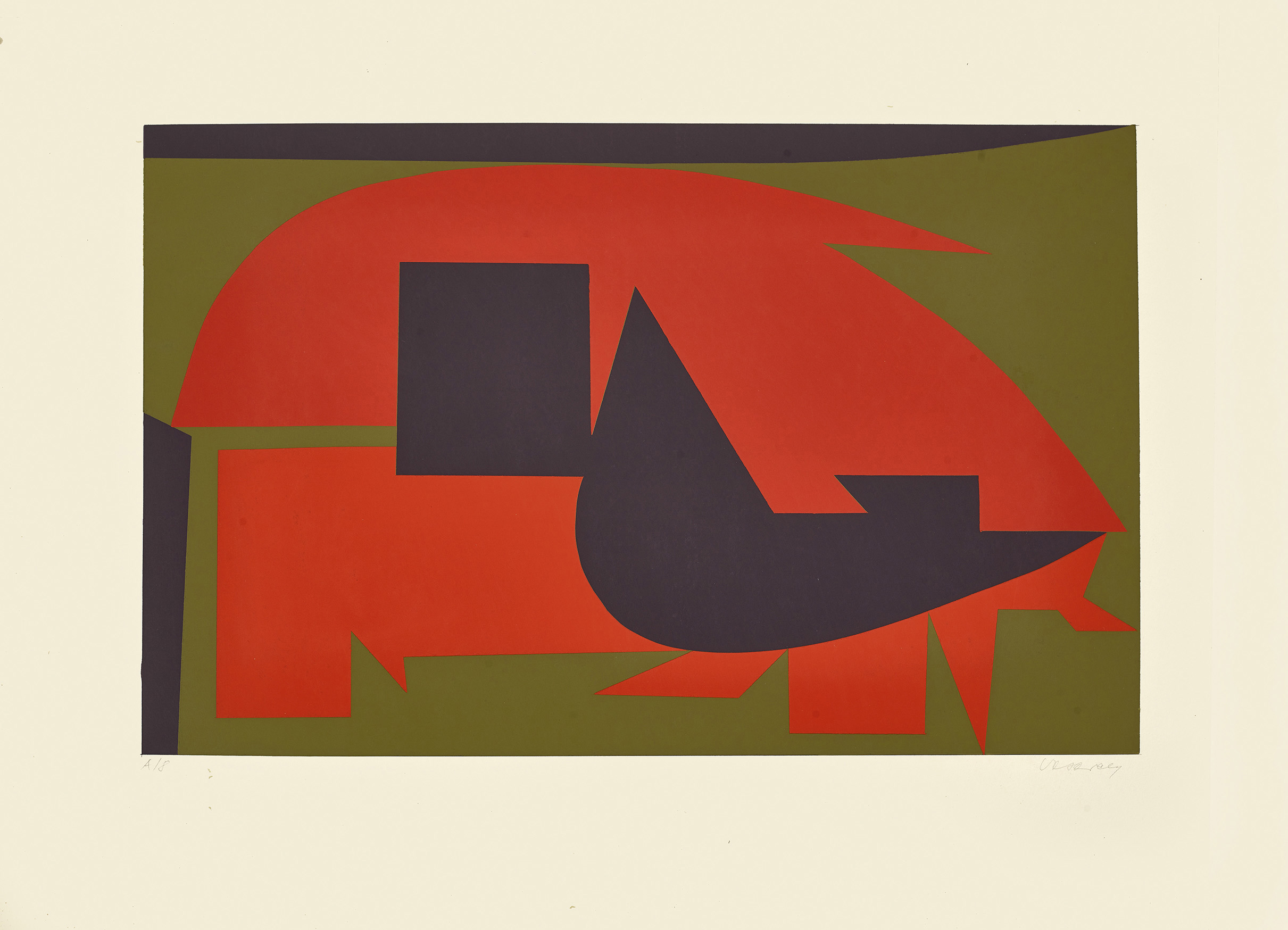 Mappe. Éditions Denise René, Paris 1955. Num. Auflage 8/65 (Gesamtauflage 100 Exemplare). Text von Victor Vasarely, Inhaltsangabe der Werke, Druckvermerk. Mit 12 Serigrafien auf losen Bogen, je handnum. A-L/8 u.l., handsig. u.r., je ca. 66x51 cm (Blattgrösse): 1. "Garam" (1948), 2. "Akka" (1949, auf grauem Papier), 3. "Zaïra" (1950), 4. "Donan" (1950), 5. "Pamir" (1951), 6. "Luberon" (1951), 7. "Senanque" (1952), 8. "Darjiling" (1953), 9. "Kandahar" (1953), 10. "Orom" (1953), 11. "Zsolt" (1953), 12. "Keryado" (1954). Schwarze Leinenmappe, Deckeletikett mit Künstlersig., Bandschliesse, Gr.-Folio