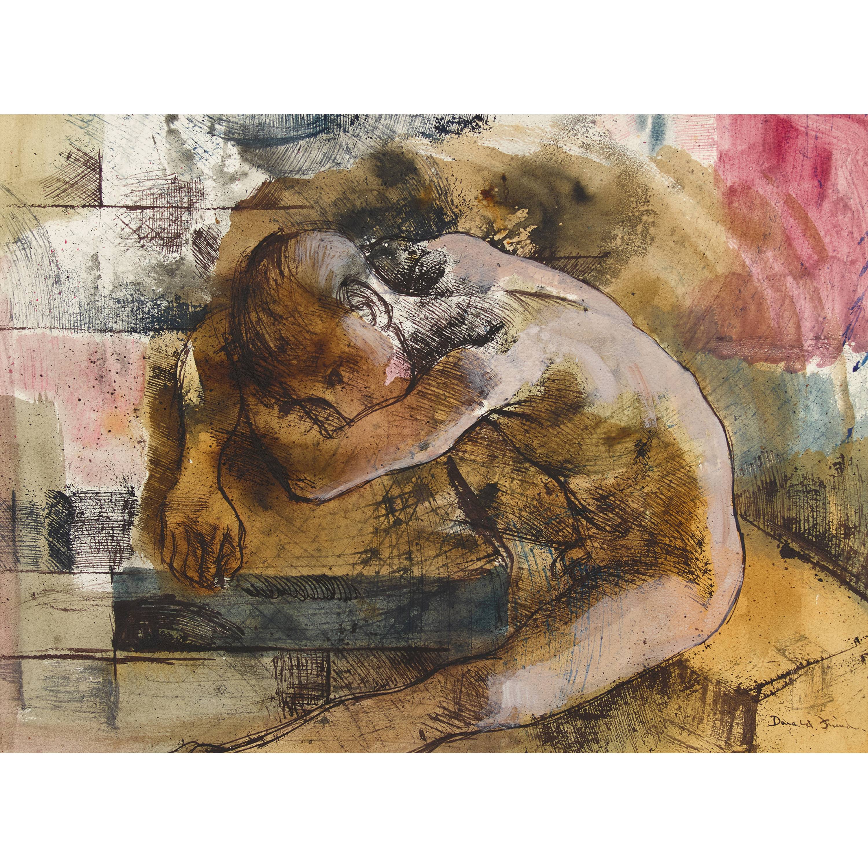 Sitzender, vornüber gebeugter Jünglingsakt.