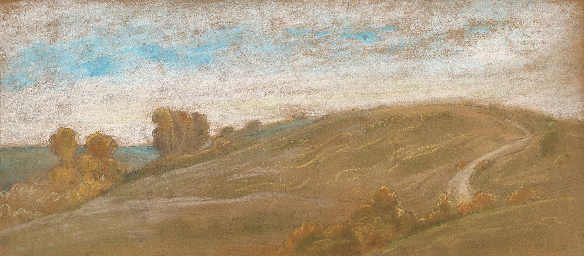 Farbkreide und Gouache über Bleistift, auf bräunlichem Papier,