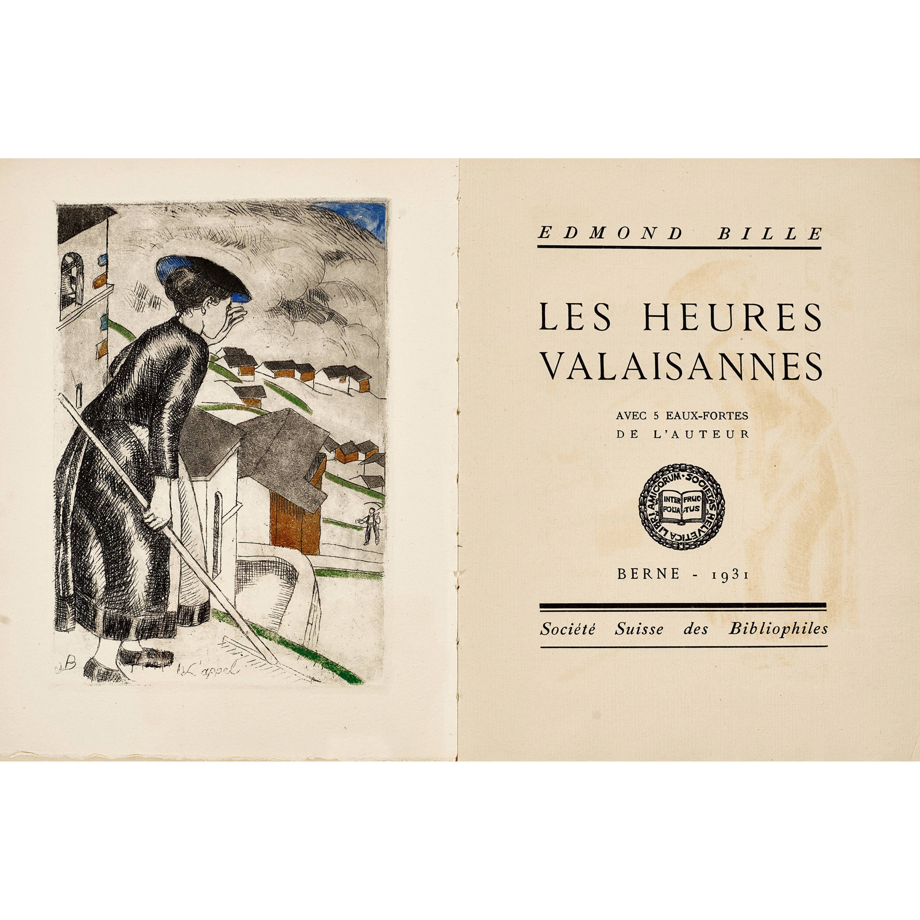 Société Suisse des Bibliophiles, Bern 1931. Num. Auflage 164/225 (Gesamtauflage 250 Exemplare). Mit 5 Radierungen von Edmond Bille, wovon 1 farbig. Druckvermerk vom Künstler handsig. 87 S. Broschiert, mit Umschlag und Titeletikett, 4°