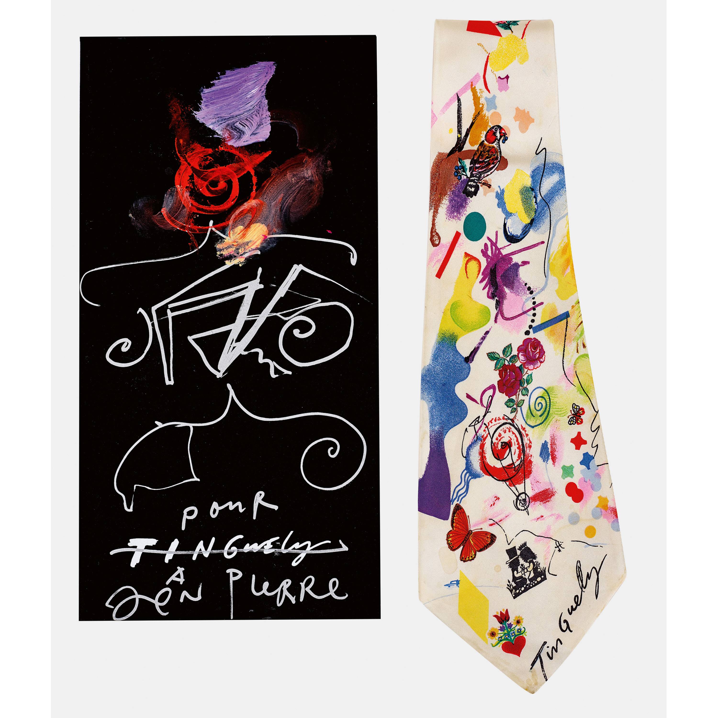Seide, polychrom bedruckt mit einem Entwurf von Tinguely, gedruckte Künstler-Sig., a. Verpackung dat. u. num. 162/1000,