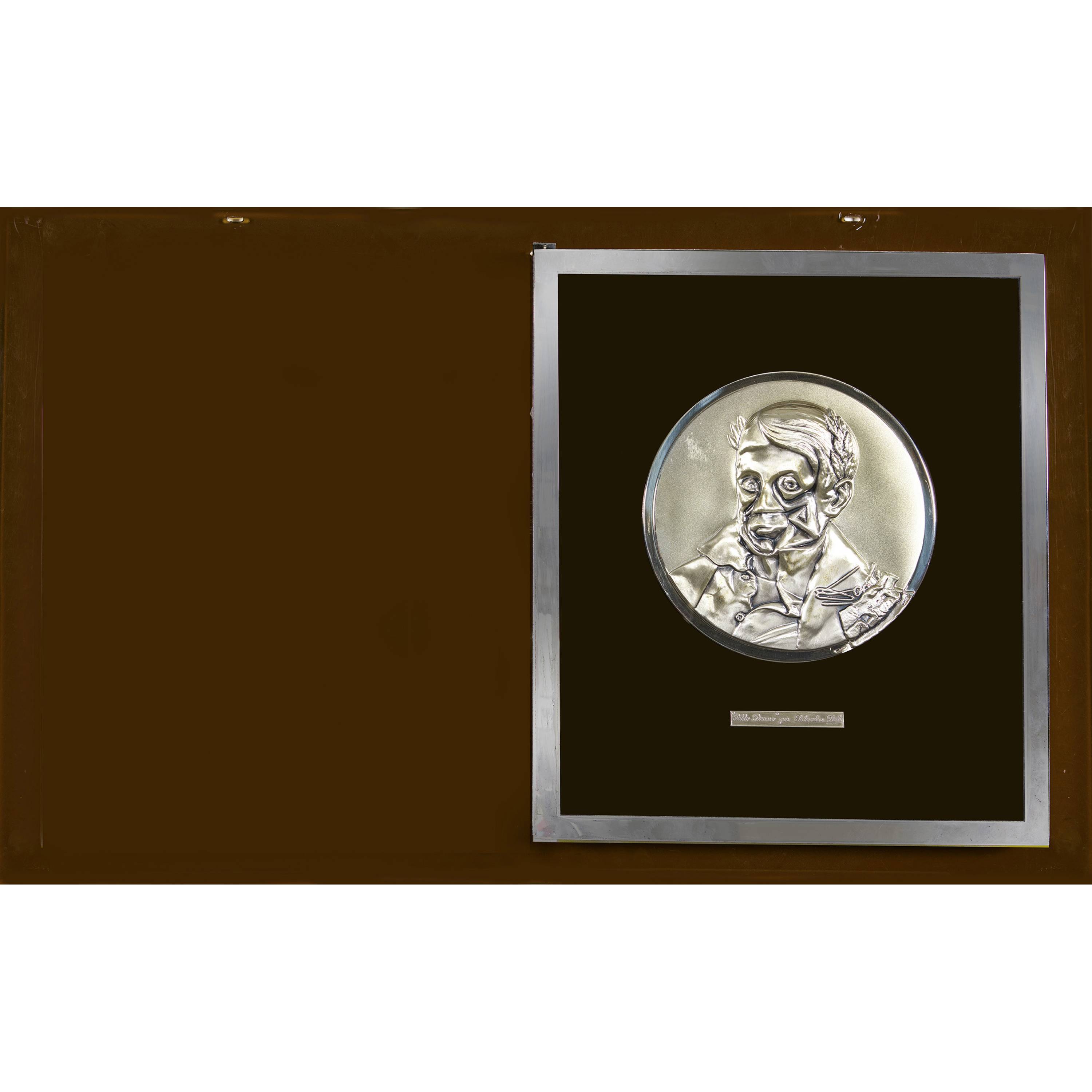 925er Silber, Feingehalts-Stpl., ital. Sternenmarke, num. "1 AR" (Unoaerre), getönte Plexiglas-Box, auf Plexiglasplatte montiert,