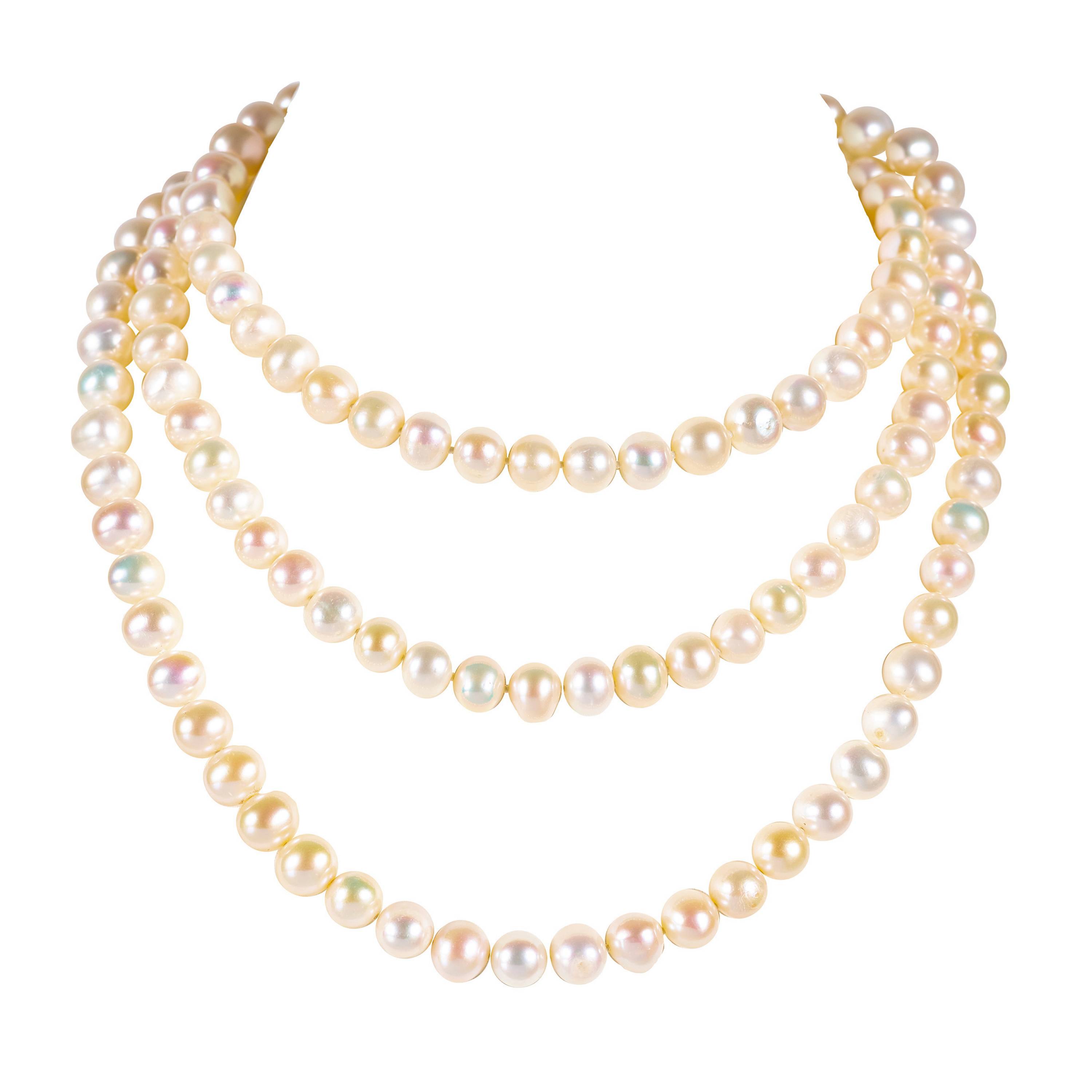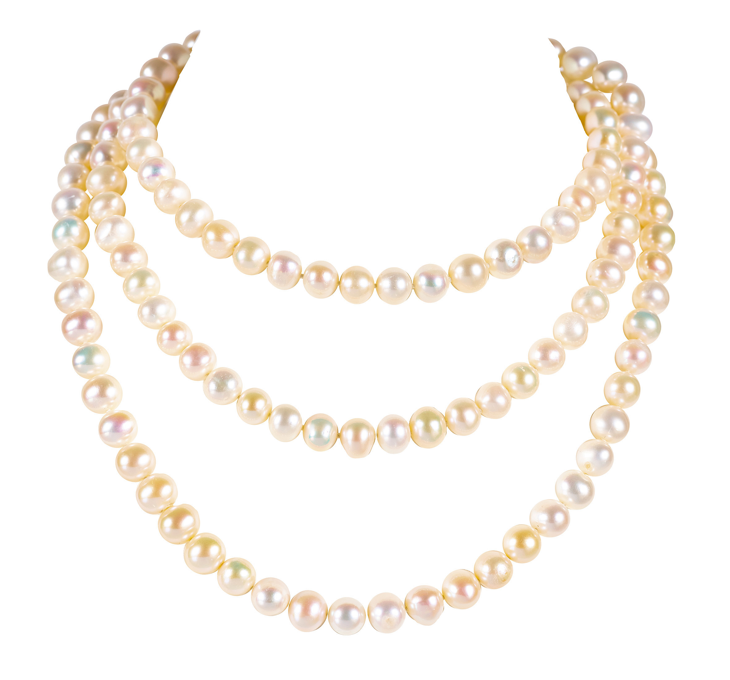 Aparter Halsschmuck, gebildet aus zahlreichen Südwasser-Zuchtperlen von ø ca. 8 mm. L: 120,5 cm