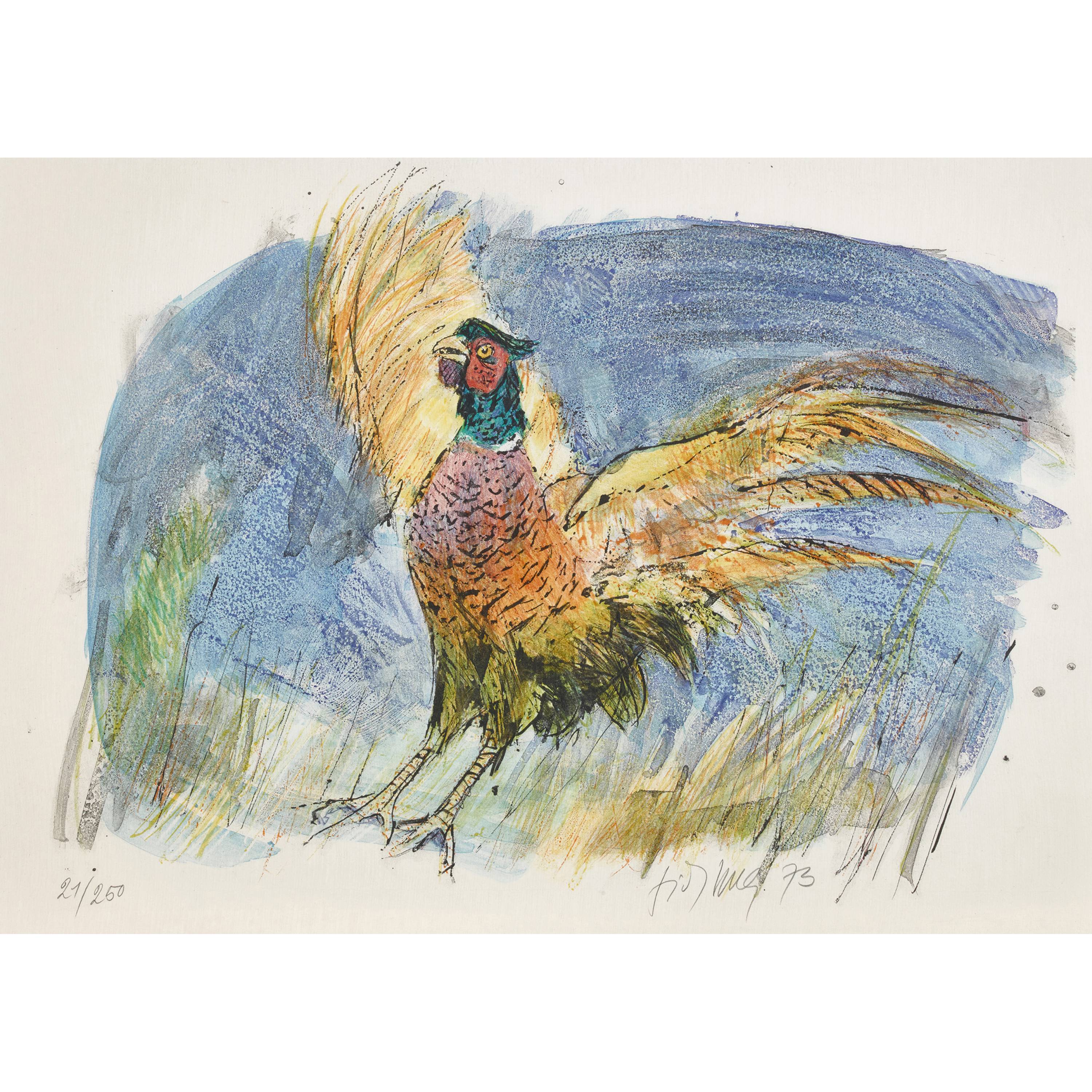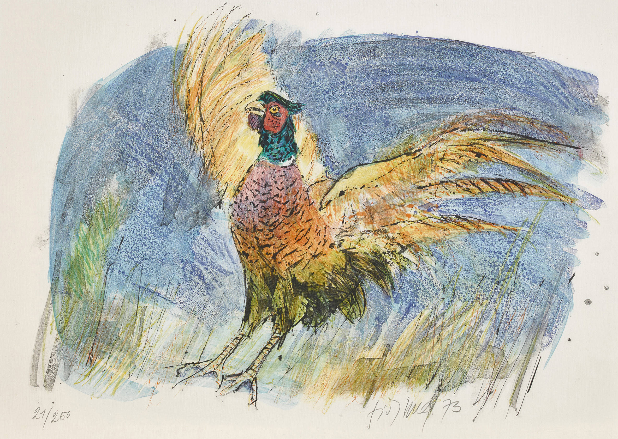 2 Blätter: 1. Fasan. 2. Wiesel.