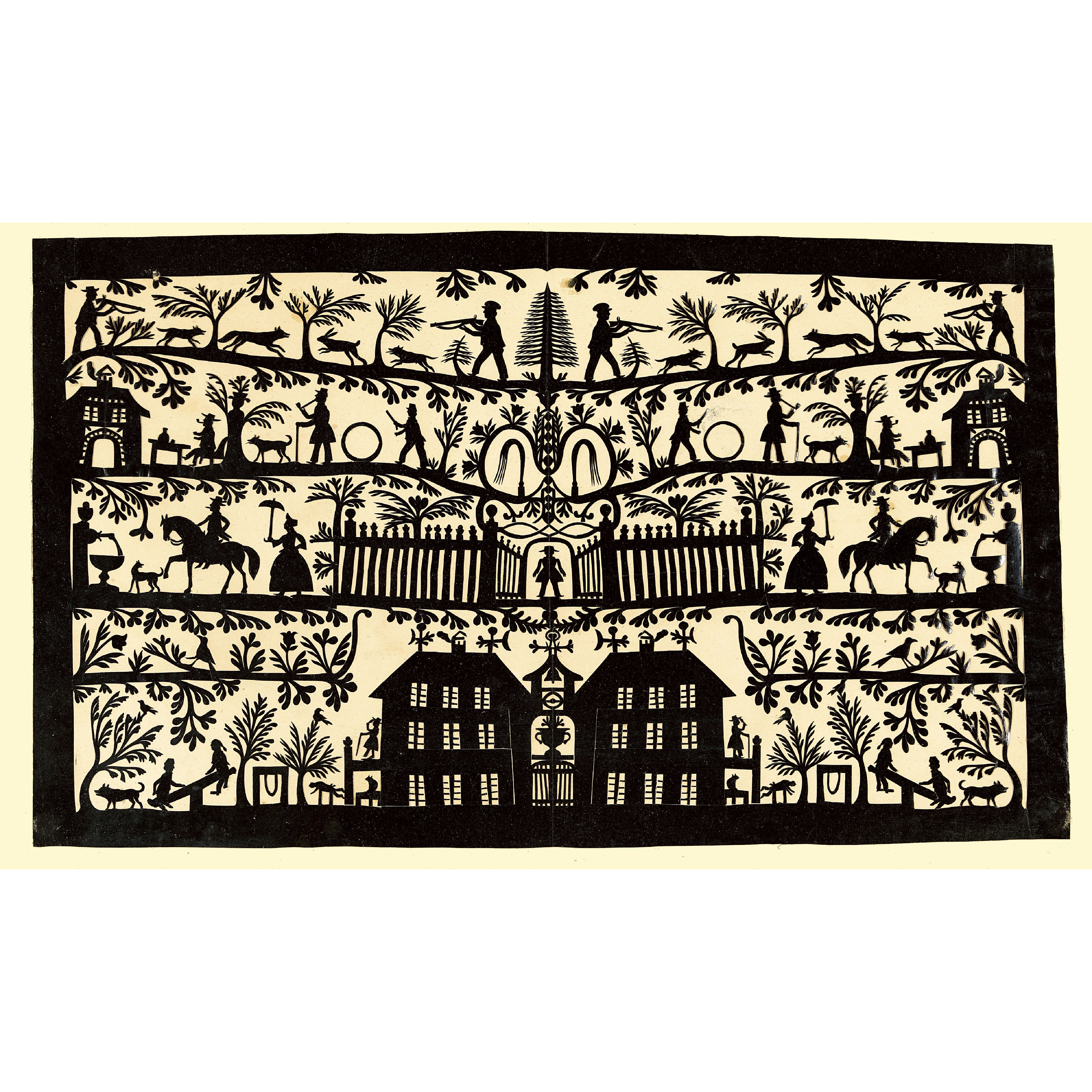 Das Motiv des Gartenzauns mit Törchen tritt in Hauswirths Werk wiederholt auf. Der geschlossene Zustand gibt Anlass zu Spekulationen auf ein trauriges Schicksal, das sich im dazugehörigen Häuschen ereignet haben könnte. Im Gegensatz dazu präsentiert sich das offene Gartentor, unter dem im vorliegenden Werk eine vergleichsweise kleine Figur steht. Ergänzt wird die Darstellung durch weitere Frohnaturen - eine Frau mit Sonnenschirm und Kinder auf einer "Gigampfi" (Wippe), die zur idyllischen Gesamtwirkung der Komposition beitragen.