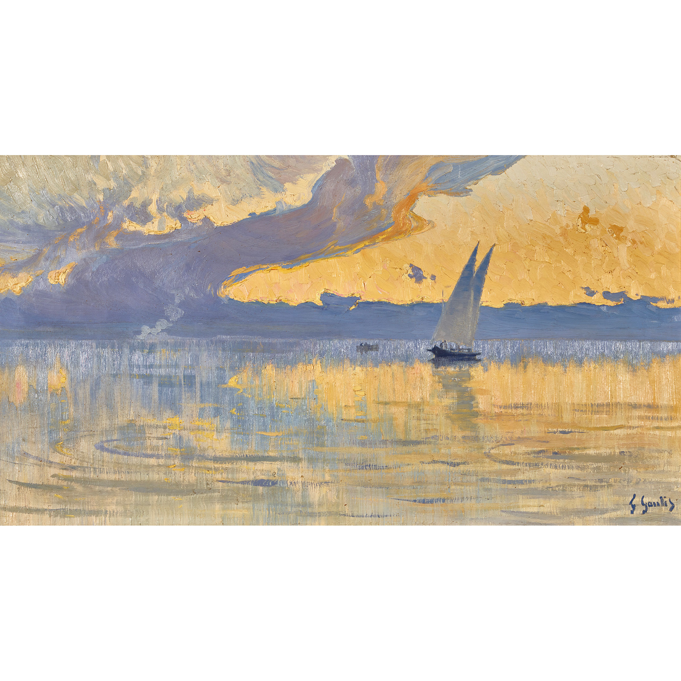 Segelschiff in der Abendsonne.