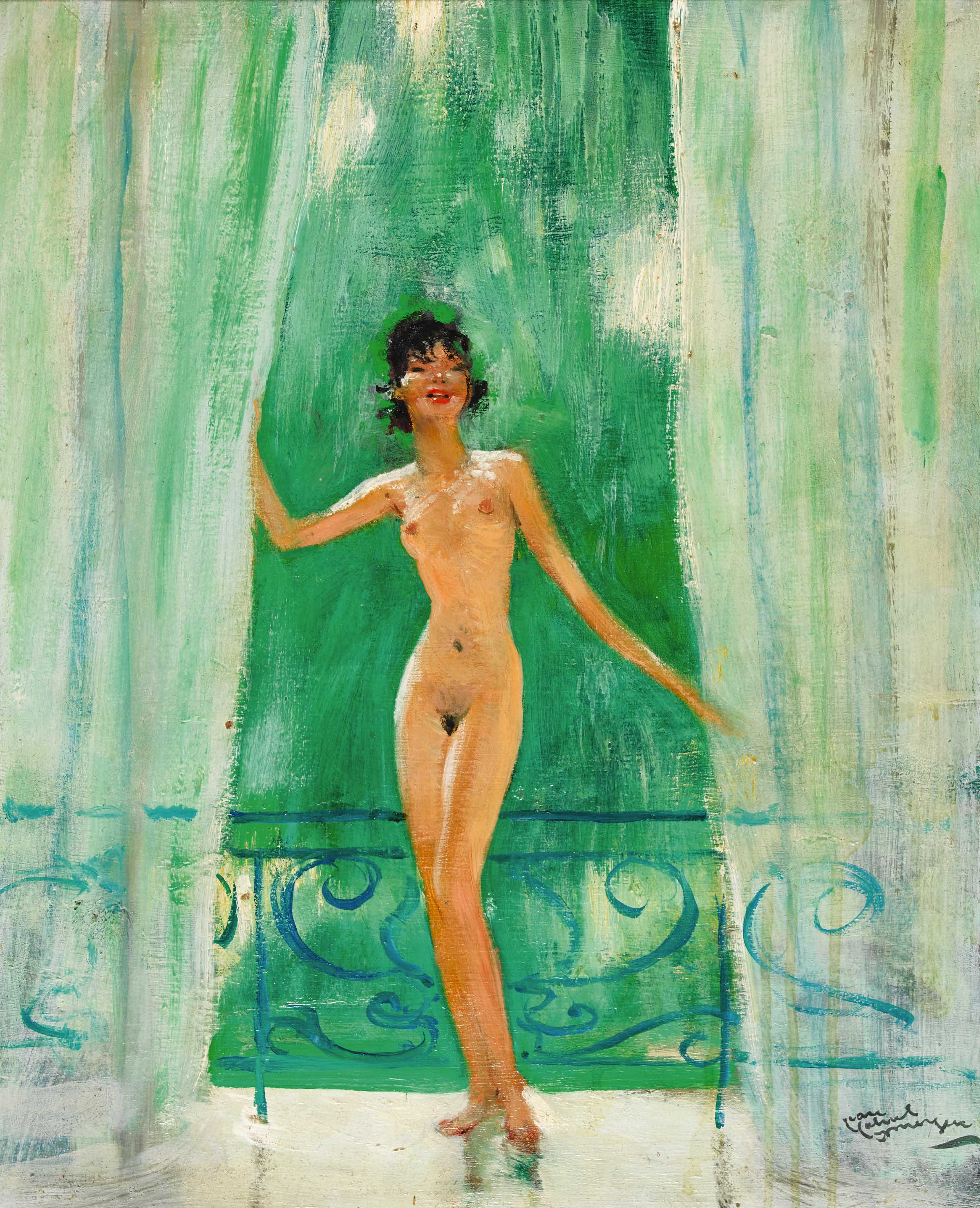 Nach erfolgreichem Studium an der Pariser Kunstakademie stellte Jean-Gabriel Domergue bereits 1906 erstmals im Salon des Artistes Français aus. In den folgenden Jahren war er regelmässig dort vertreten und gewann eine Reihe von Auszeichnungen, schliesslich ausser Konkurrenz 1920 eine Goldmedaille. Nachdem er als vielversprechender Landschaftsmaler begonnen hatte, verlegte er seinen Fokus bald auf leichtfüssige Darstellungen junger Frauen. Seine in virtuoser, flüssiger Malweise und extravaganten Farben gehaltenen Porträts und Akte erfreuten sich bei der Pariser Gesellschaft grosser Beliebtheit. Daneben arbeitete er als Illustrator und Zeichner für verschiedene Zeitschriften. Der erfolgsverwöhnte Maler liess sich 1927 in einer prächtigen Villa in Cannes nieder. 1955-1962 war er neben seiner künstlerischen Tätigkeit auch als Konservator im Pariser Museum Jacquemart-André tätig, wo er Ausstellungen über Vincent van Gogh, Henri de Toulouse-Lautrec und Francisco de Goya organisierte.