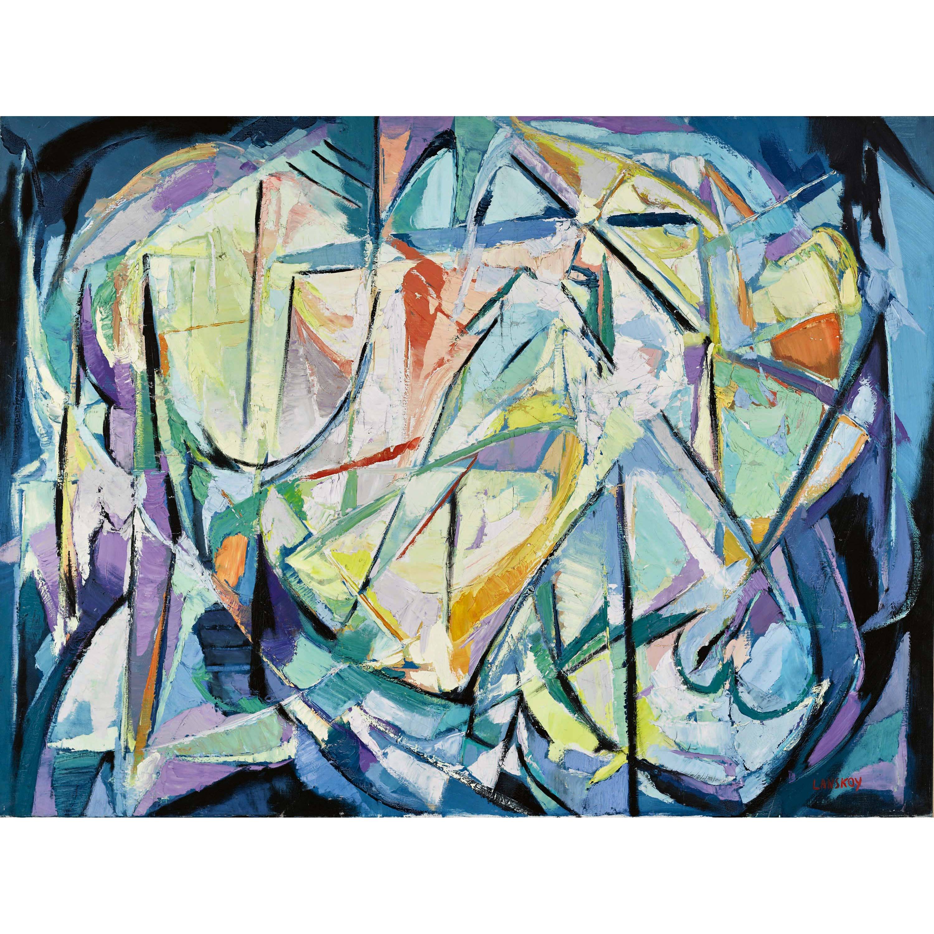 This late work by André Lanskoy is considered a distinctive representative of lyrical abstraction, a new genre within the post-war "École de Paris". The composition on offer clearly demonstrates that the artist had been intensely investigating the interaction between form and colour during this phase.