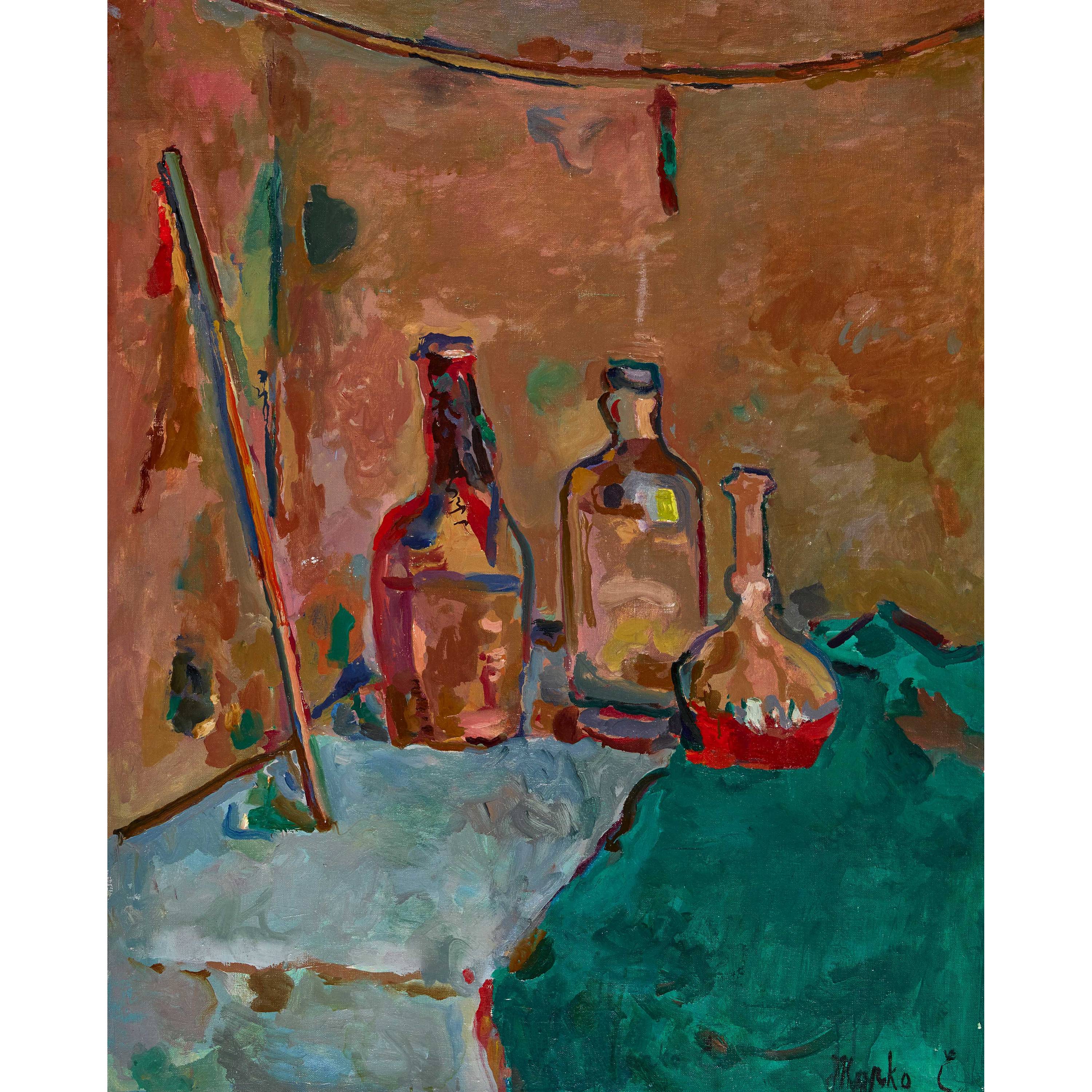 Stillleben mit Flaschen.