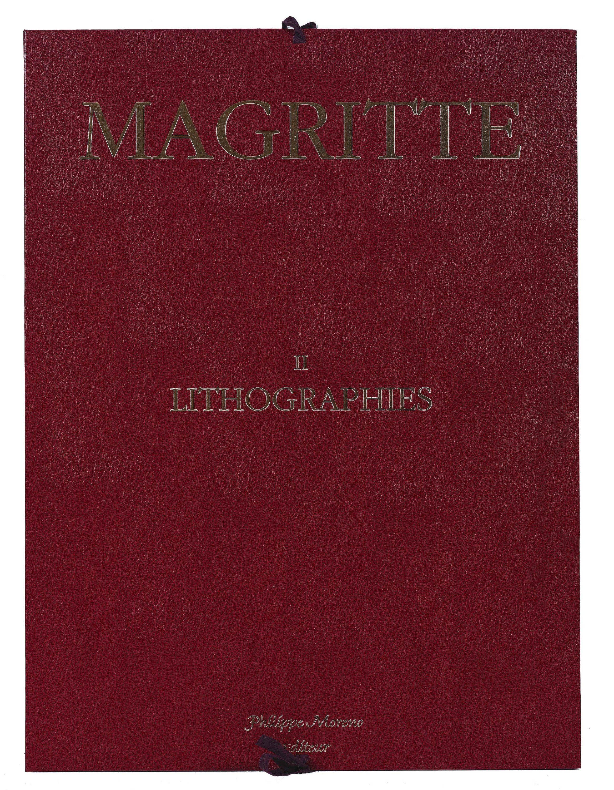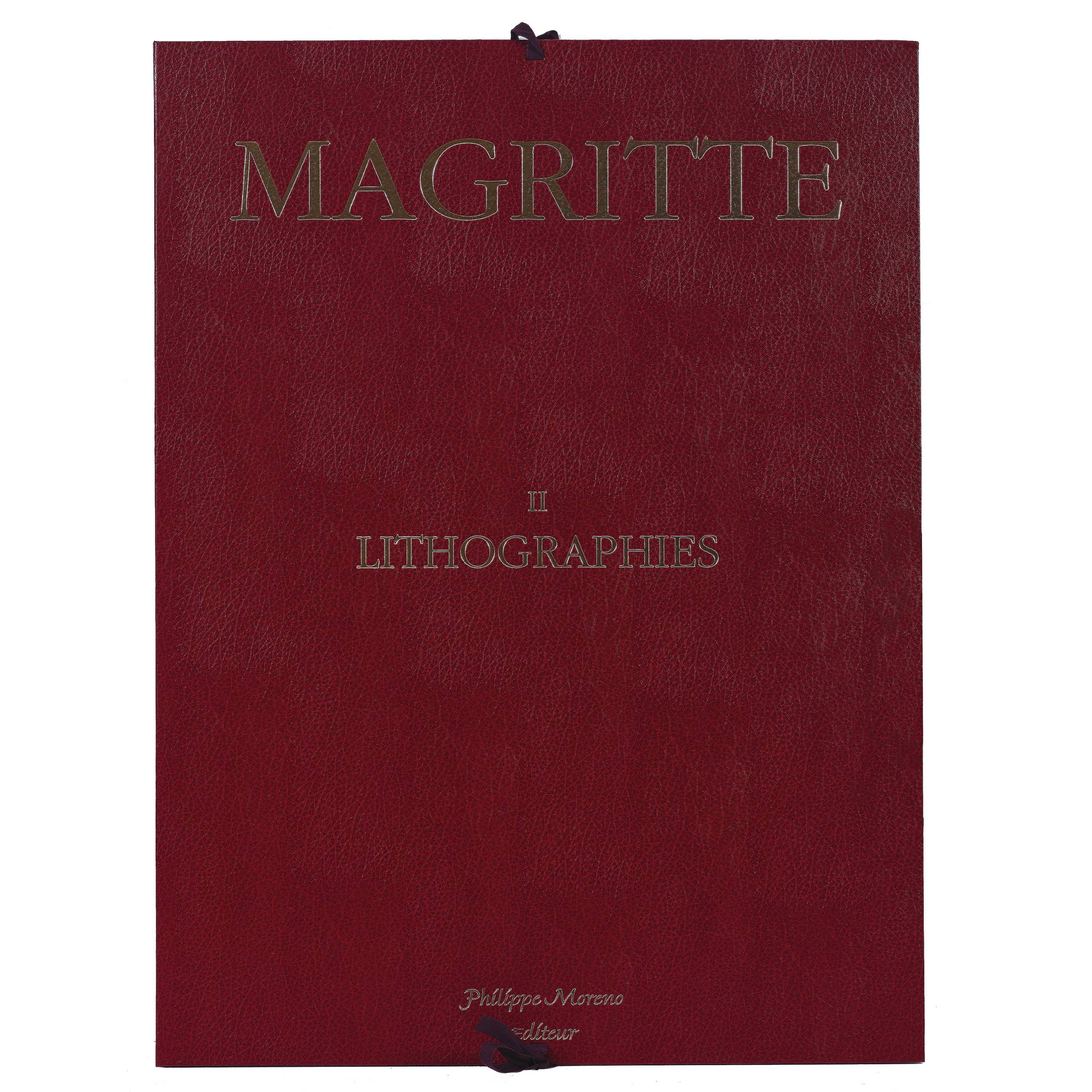 Philippe Moreno Editeur, Paris 2004. Num. Auflage 241/300. Mit 8 Farblithografien nach Gemälden der Jahre 1937-1967, je handnum. u.l., je verso vom Hrsg. sig., je zwei Blindstempel "ADAGP" u. "Succession Magritte", je ca. 78x58 cm (Blattgrösse). Titelblatt und Blatt mit Druckvermerk. Rote Kunstledermappe mit goldgeprägtem Titel, Bandschliessen, Gr.-Folio