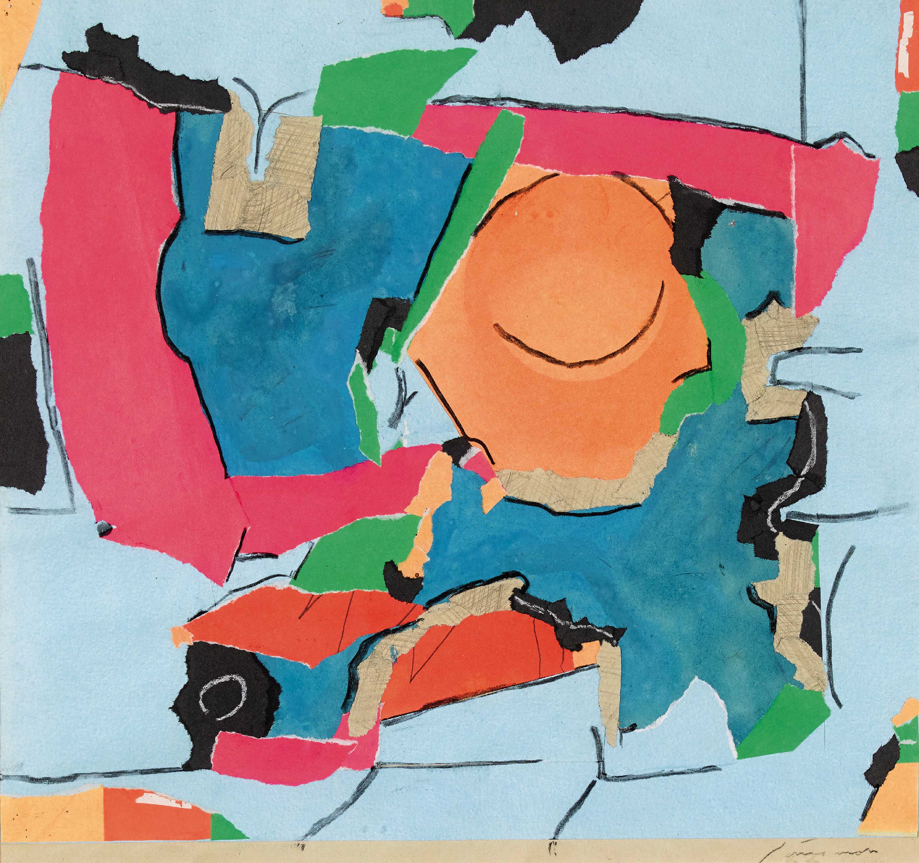 Papiercollage, Aquarell, Bleistift und Tusche,