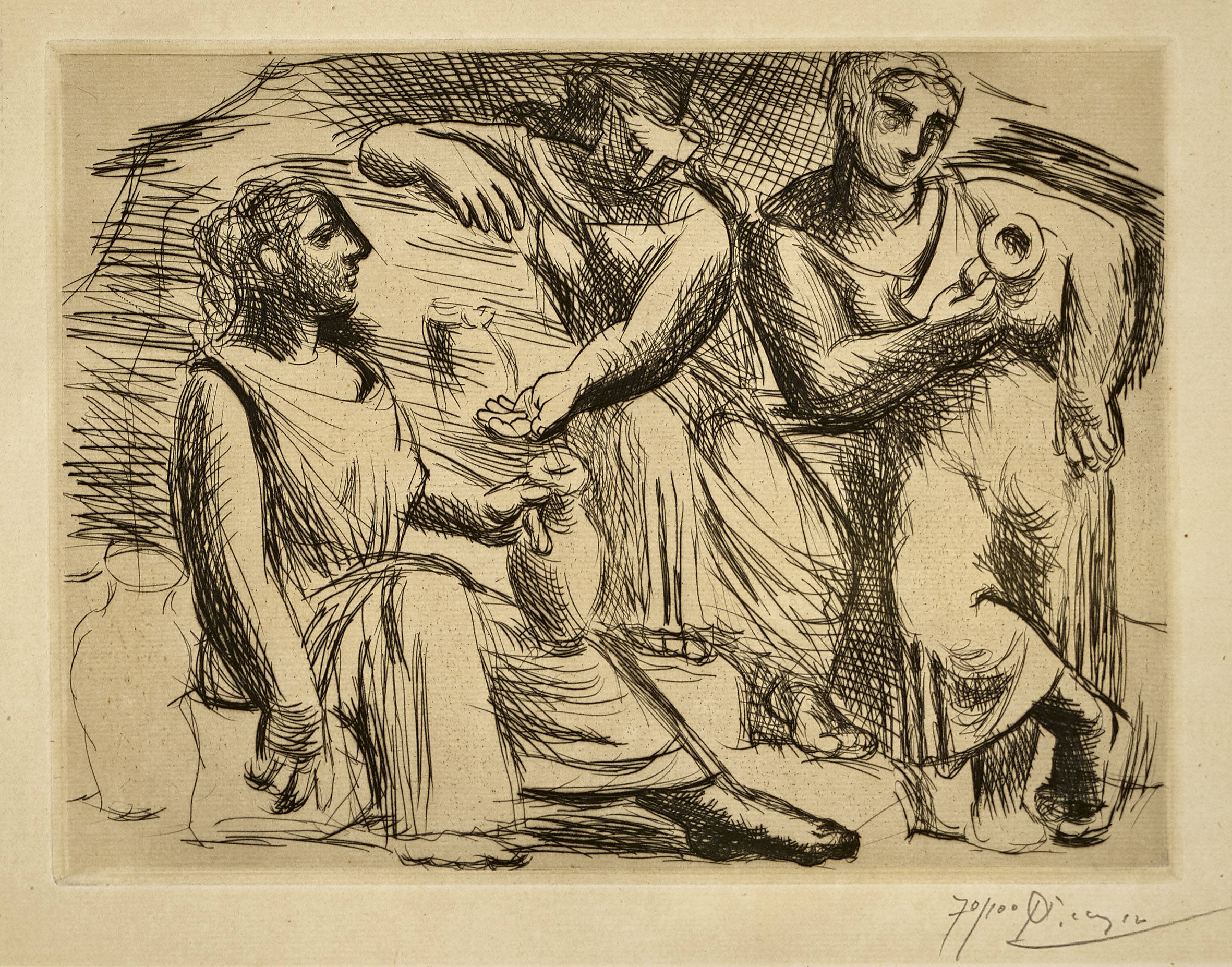 Literatur: Georges Bloch, Picasso. Catalogue de l'oeuvre gravé, Bern 1975, Bd. I, S. 50, Nr. 45. Datiert 1921.