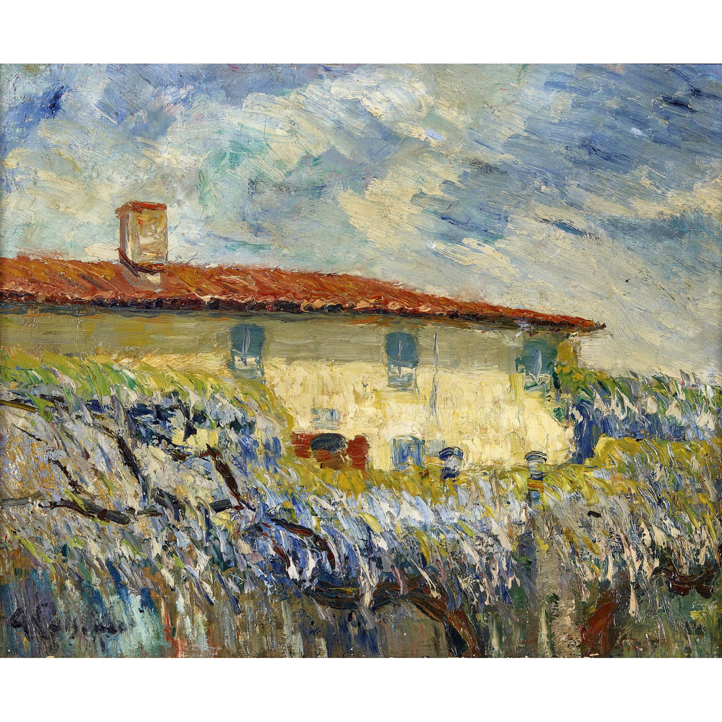 Das angebotene Werk wird durch Gustave Loiseaus charakteristische, prägnante Pinselführung bestimmt. Dabei dominieren kurze, rhythmisch gesetzte Striche in parallel verlaufenden Bahnen und pastose Flecken die sommerlich anmutende Darstellung.