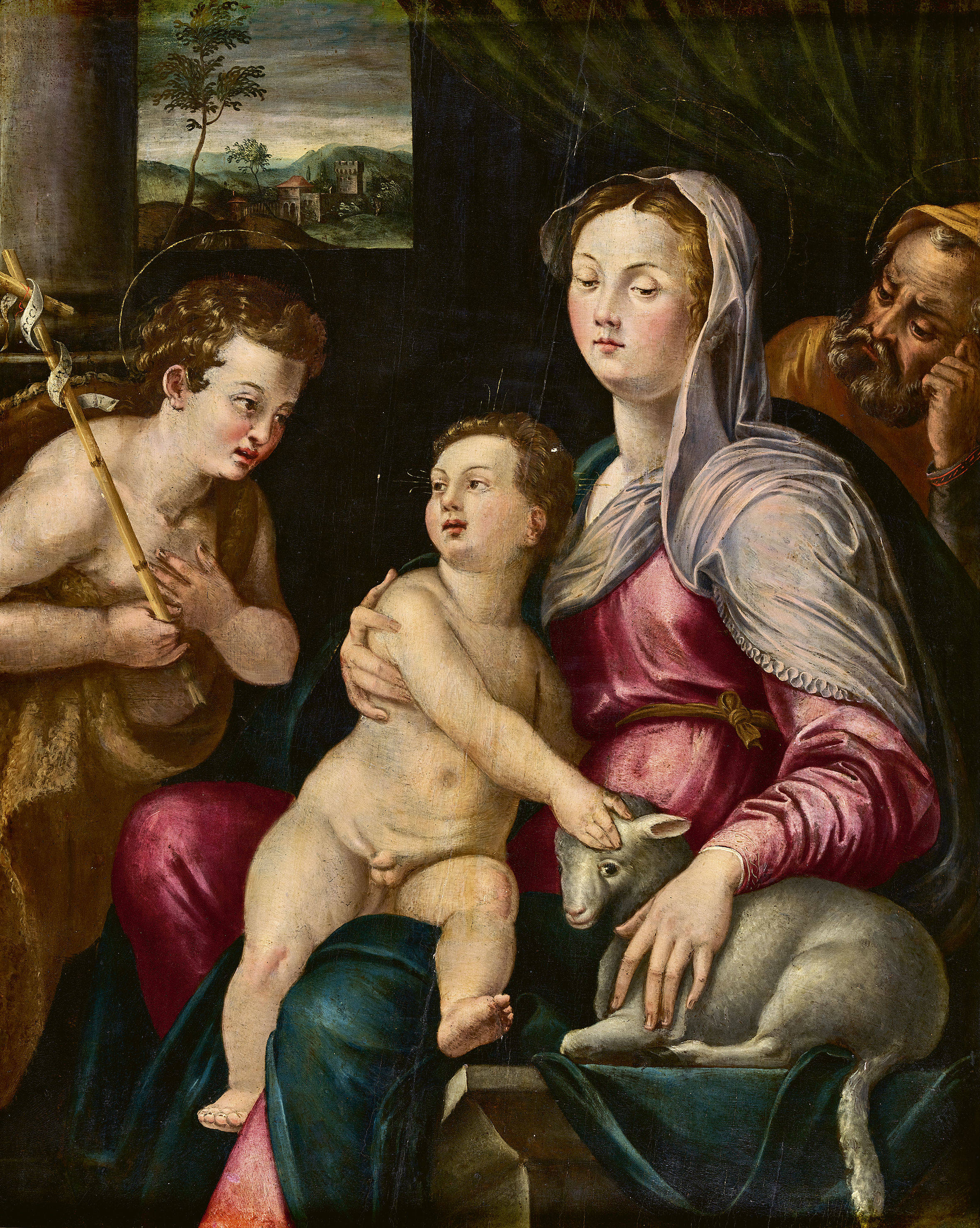 Das angebotene, um 1540-1550 entstandene Werk geht zurück auf ein Raffaellino del Colle zugeschriebenes Gemälde, das sich heute in der Sammlung der Walters Art Museum in Baltimore befindet (Inventar-Nr. 37'548).